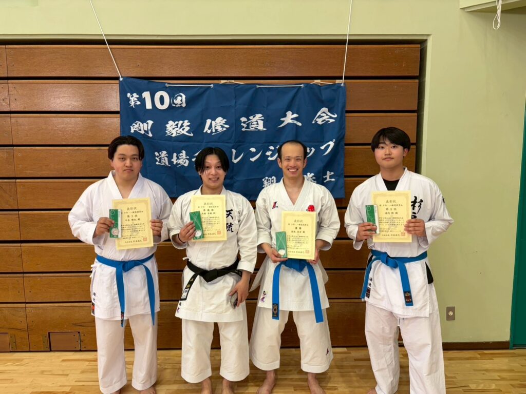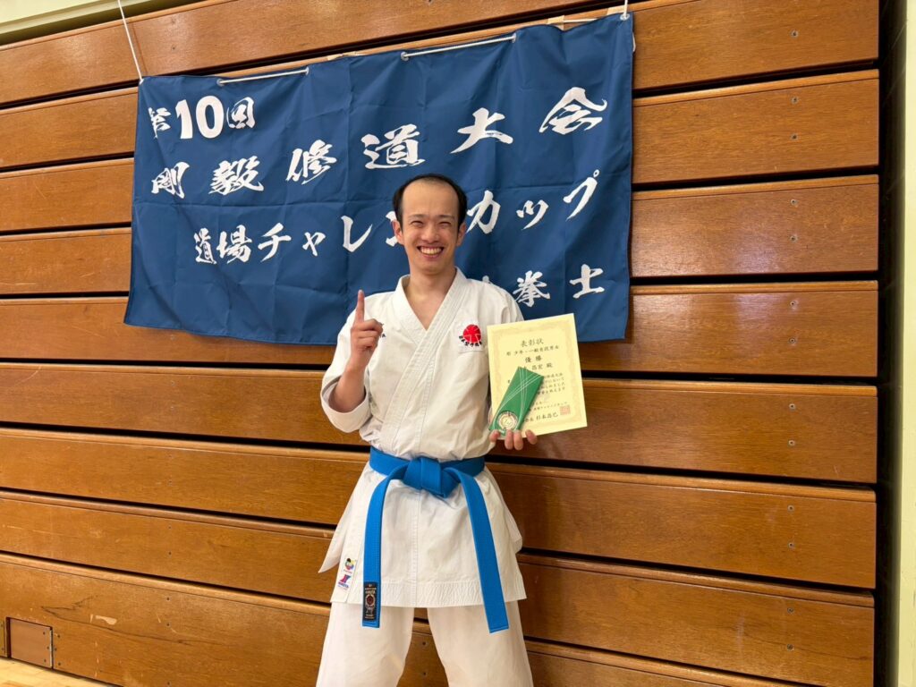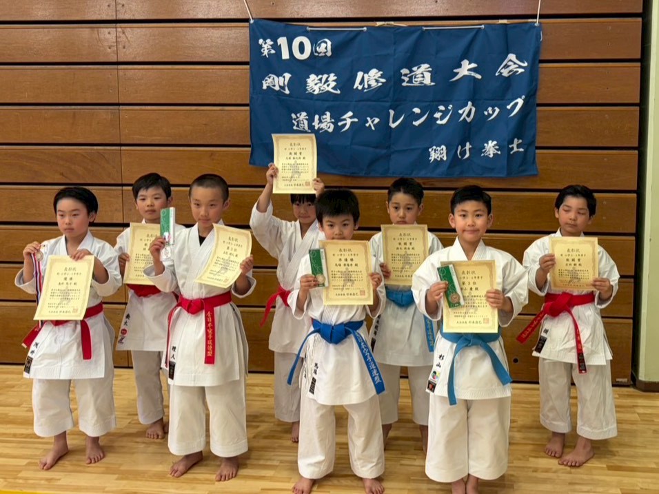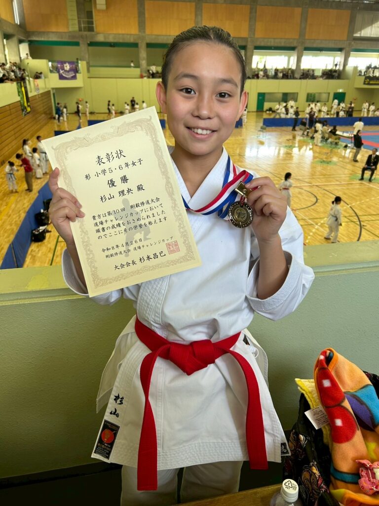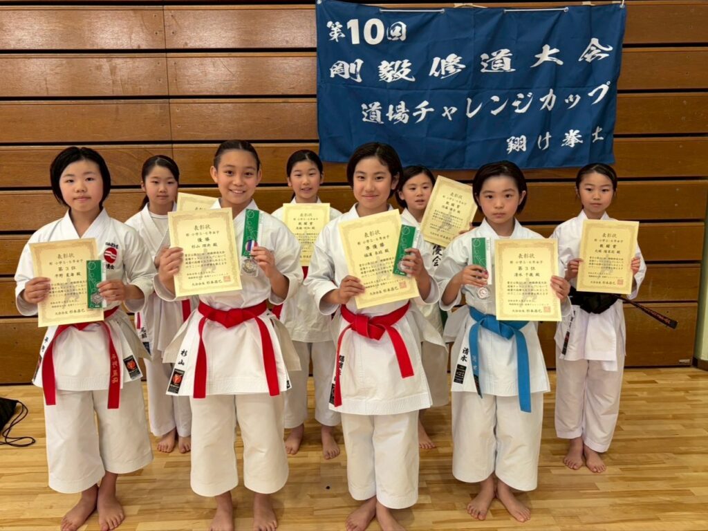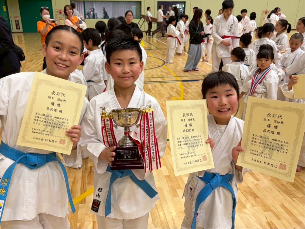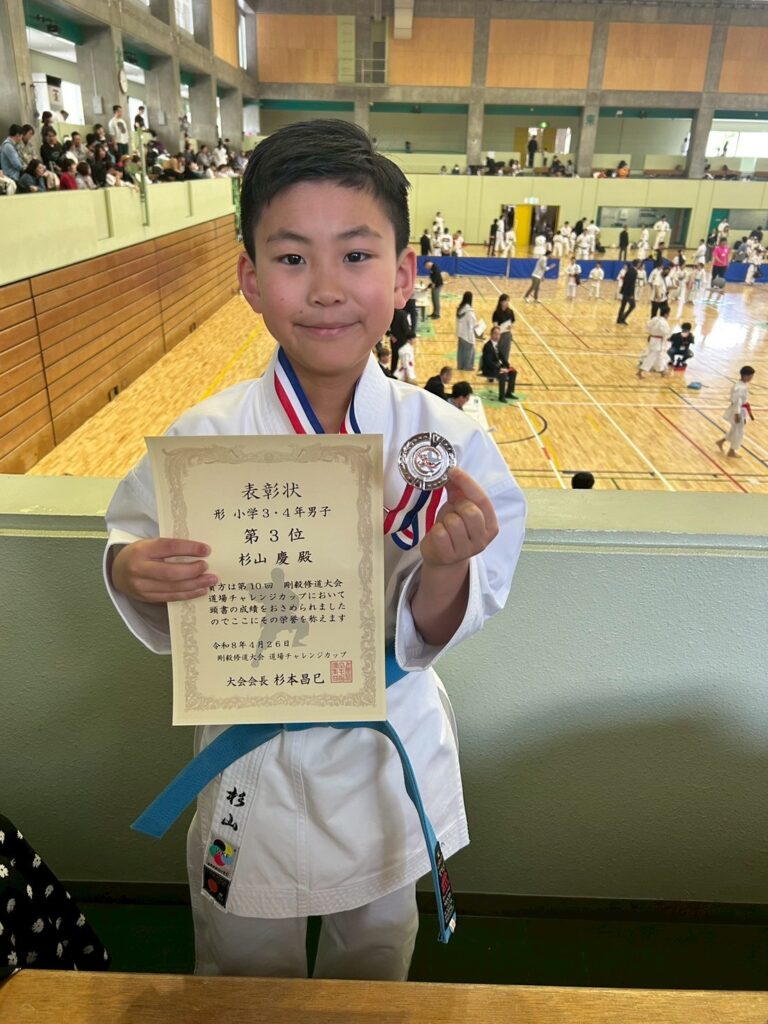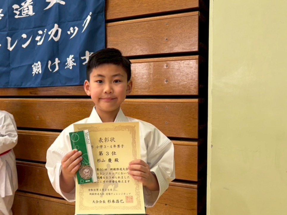 カテゴリー その他 第10回剛毅修道大会 道場チャレンジカップ**結果報告** 投稿者 作成者: 昌武館事務局 投稿日 2026年4月27日 2026年4月26日(日)に行われた剛毅修道大会の結果です。 形の部 優勝 小学5,6年生女子 杉山理央 一般有段男子 福本昌宏 第3位 小学3,4年生男子 杉山 慶 組手の部 第3位 小学1,2年女子 内山紗季 小学3,4年男子 杉山 慶 団体組手 優勝 昌武館チーム(先鋒 内山紗季、中堅 杉山慶、大将 杉山理央) ← 第79回江戸川区春季空手道大会**結果報告**